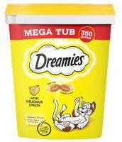 De Dreamies zijn nu verkrijgbaar in de Mega Tub met wel 350 gram aan snoepjes in twee lekkere smaken je kat heeft de keuze uit kaas en kip.