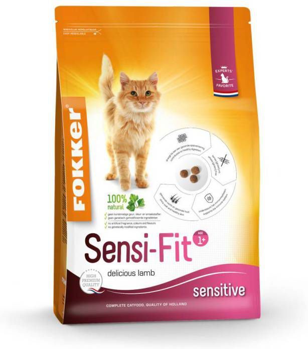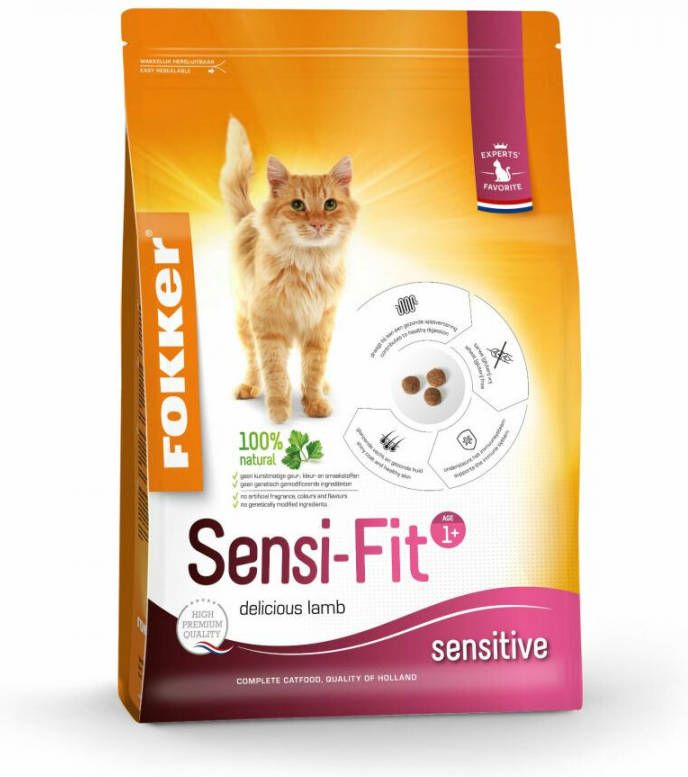 Sommige katten hebben meer last van gevoeligheden dan anderen, een voeding met lam en rijst kan je kat hierbij helpen. Sensi-Fit van Fokker is een high premium brokvoeding geschikt voor volwassen katten met huidaandoeningen of verteringsproblemen.
