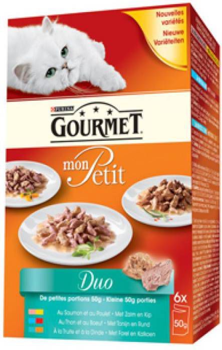 Katten eten graag verschillende kleinere maaltijden eet gedurende de dag. Daarom heeft GOURMET™ Mon Petit duo ontwikkeld, een selectie van overheerlijke recepten, die twee smaken combineert en speciaal ontwikkeld is in kleine porties.