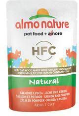 Almo Nature HFC Natural Kattenvoer Maaltijdzakje Zalm en Pompoen is een uit pure ingrediënten bestaande maaltijd voor de kat.