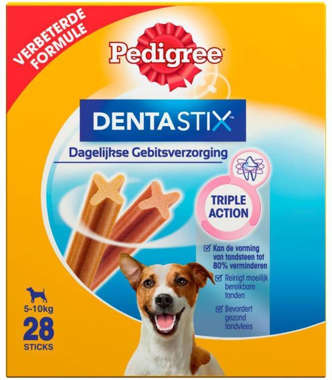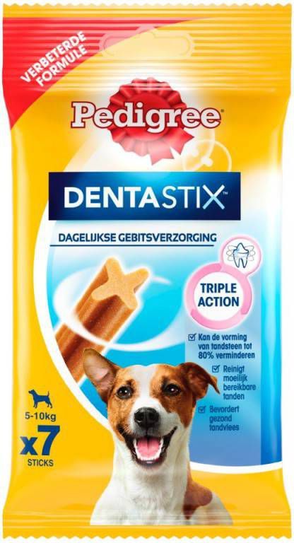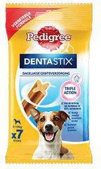 Pedigree DentaStixDe Dentastix Mini van Pedigree hebben een reinigende werking op het gebit van volwassen honden vanaf 10kg. Pedigree Dentastix: * Zijn voor volwassen honden tot 10kg * Dragen bij aan de vermindering van tandsteen / tandplak * Zijn suikervrij en vetarm.