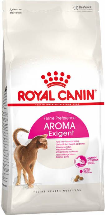 Royal Canin Aroma Exigent is speciaal droogvoer voor katten met een kritische neus. Dit voer beschikt over heerlijke aroma's die ervoor zorgen dat het voer als prettig ervaren wordt door katten, die hun voer uitkiezen op basis van geur.