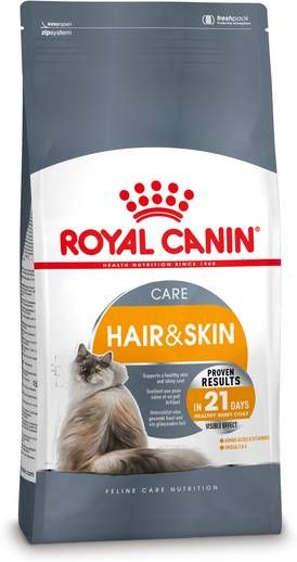 Royal Canin verzorgt vacht en huidVoor katten met een gevoelige huid.Katten gebruiken eenderde van de eiwitten uit de voeding voor de stofwisseling van de huid en het onderhoud van de vacht.
