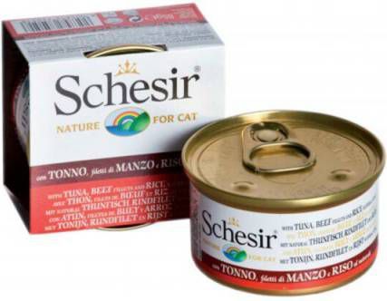 . Alle Schesir voor uw Kat uit voorraad leverbaar!.Schesir Katten Natvoer Blik Gekookte Tonijn en Rundvlees met Rijst 85 gr