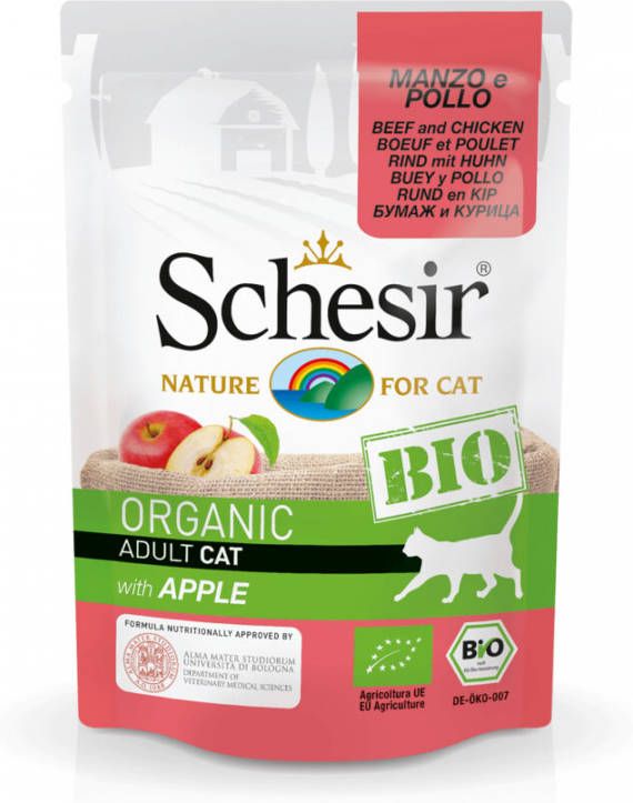 Schesir Kat Bio Pouch 85 g Kattenvoer Rund&Kip&Appel direct bestellen in onze webshop! Schesir kattenvoeding