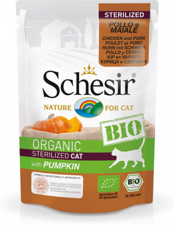 Schesir Kattenvoer Sterilized Bio Kip Varken Pompoen 85 gr