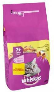 Whiskas Brokjes Senior 7+ met kip kattenvoer is een volledig kattenvoer voor oudere katten.