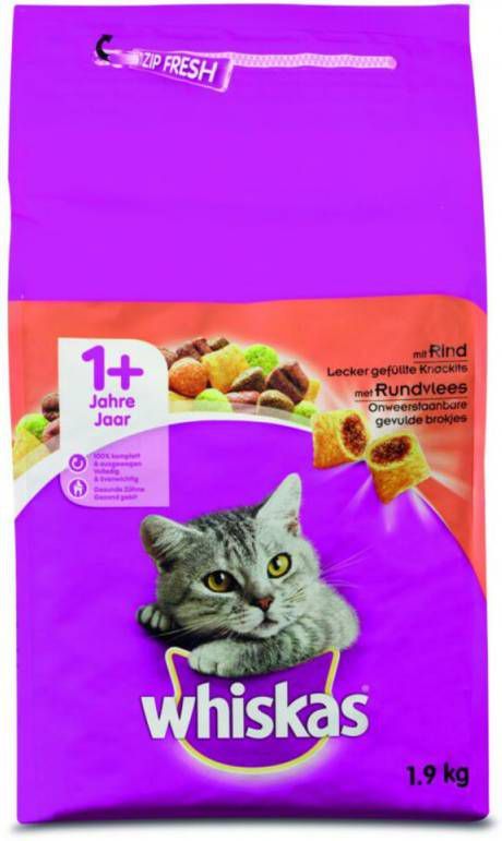 Whiskas Brokjes Adult Kattenvoer Rund 1.9 kg direct bestellen in onze webshop! Heerlijke droogvoer voor je volwassen kat