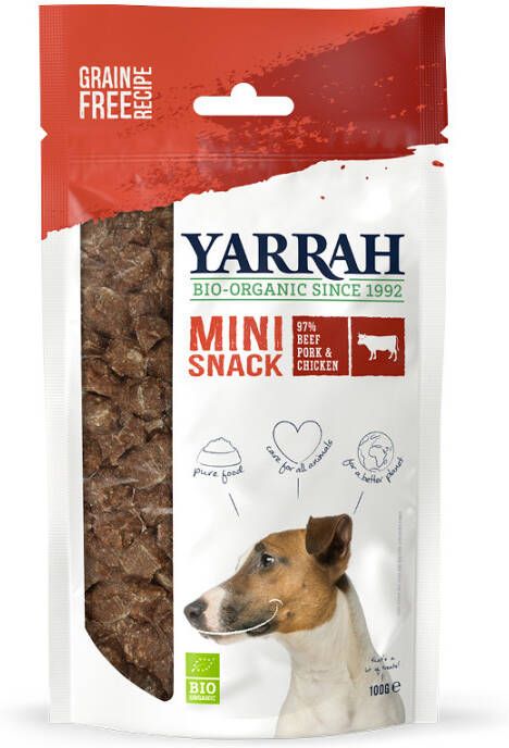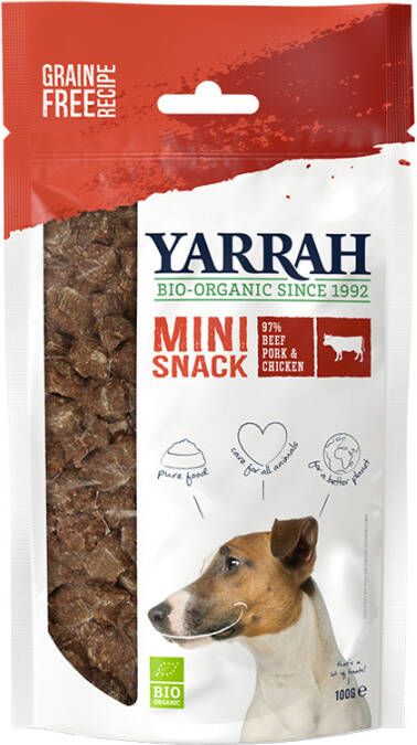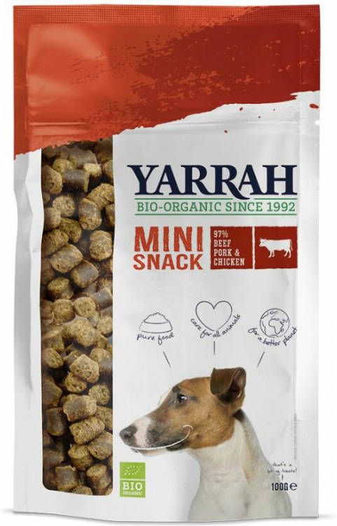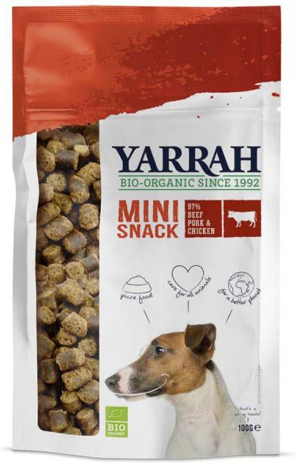 Tip: de Biologische Mini Snacks zijn ook heerlijk te combineren of af te wisselen met Adult Hondenvoer met Kip, Paté met Varkensvlees 400 g en Chunks met Kip en Rund 150 g van Yarrah.